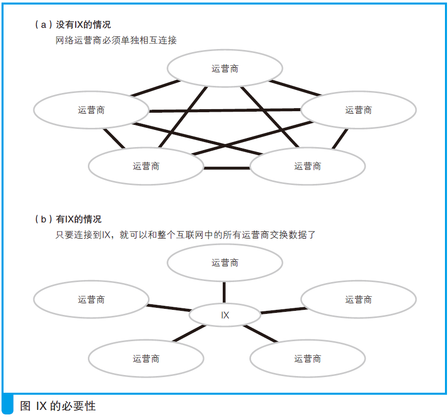IX:Internet eXchange,中文一般叫作“互联网交换中心”。