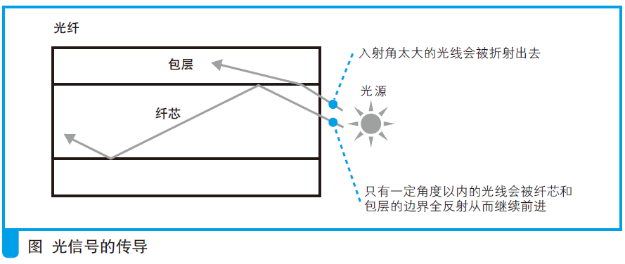 中,纤芯的直径对光的传导影响很大,要理解这一点,我们得先来看看光在光纤中是如何传导的。