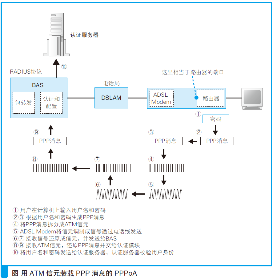 首先,我们先看看使用 PPPoA 方式的 ADSL 接入网。
